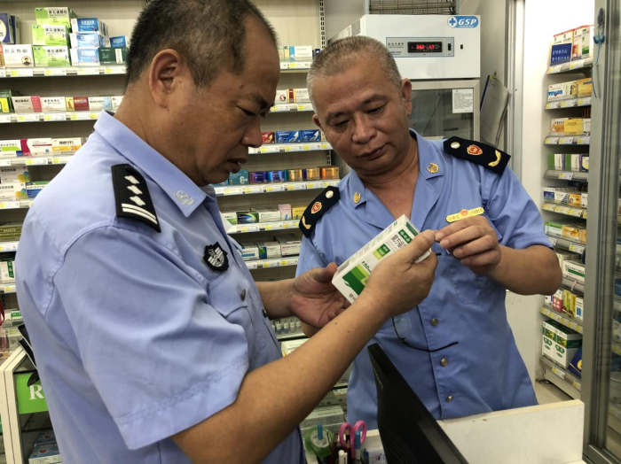 图为:6月18日,福建省清流县市场监督管理局联合县公安局禁毒大队联合对辖区内药品零售企业及医疗机构开展含特殊药品复方制剂检查。
